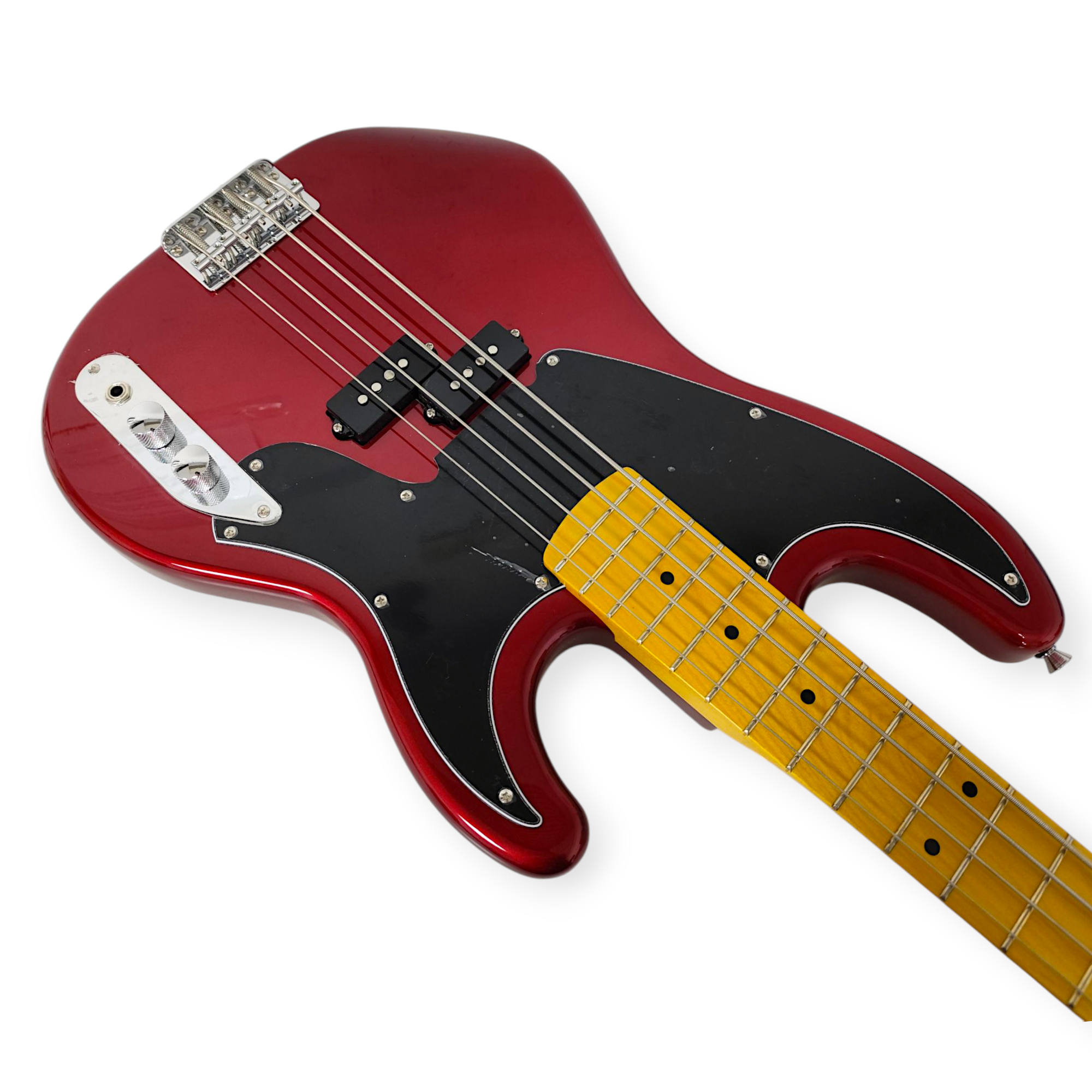 Construido con cuerpo de álamo y mástil de maple atornillado, brinda un excelente balance entre resonancia y comodidad. Su diapasón también en maple asegura un ataque brillante y definido, ideal para líneas rítmicas firmes y claras.