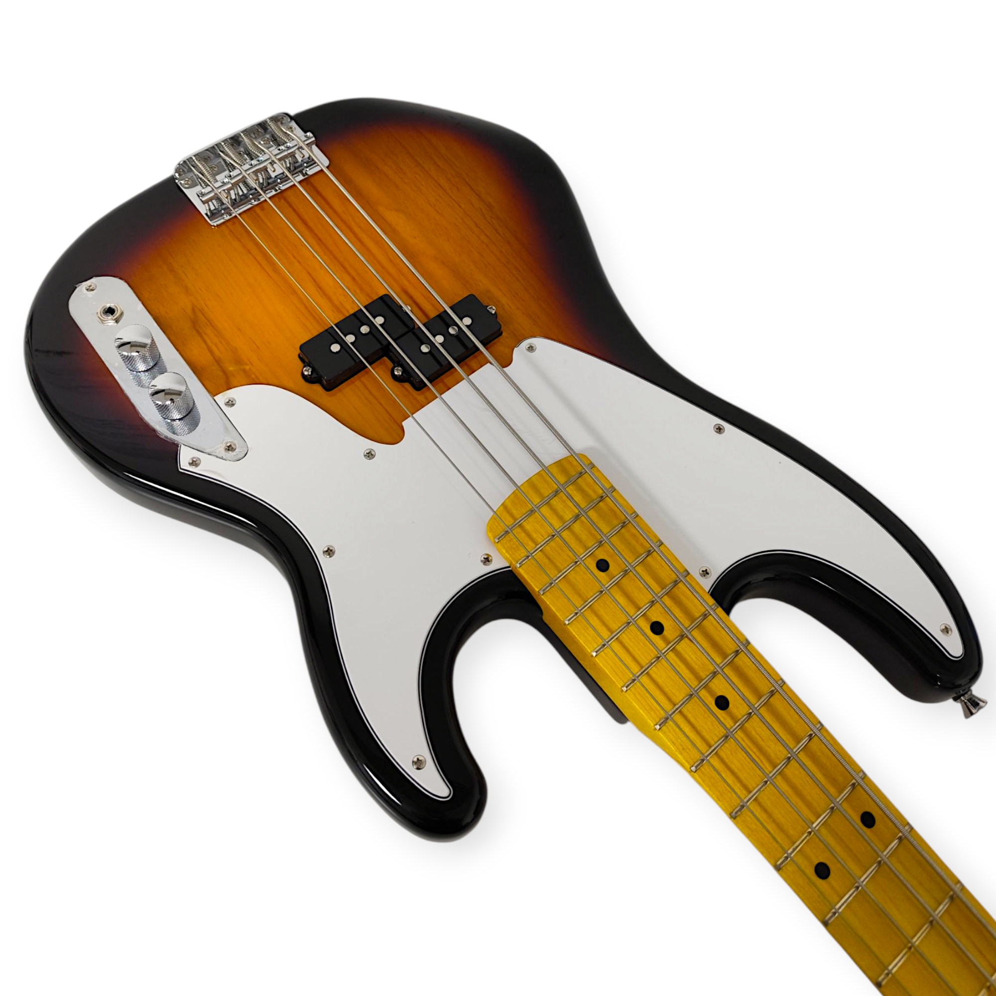 Construido con cuerpo de álamo y mástil de maple atornillado, brinda un excelente balance entre resonancia y comodidad. Su diapasón también en maple asegura un ataque brillante y definido, ideal para líneas rítmicas firmes y claras.