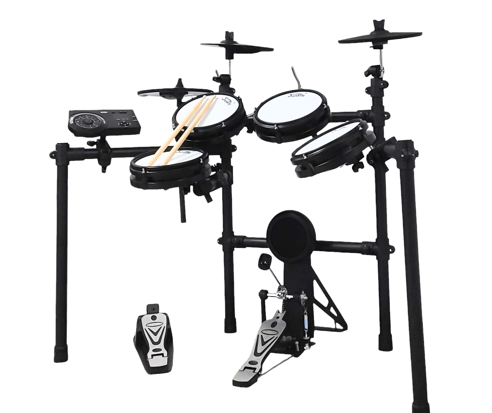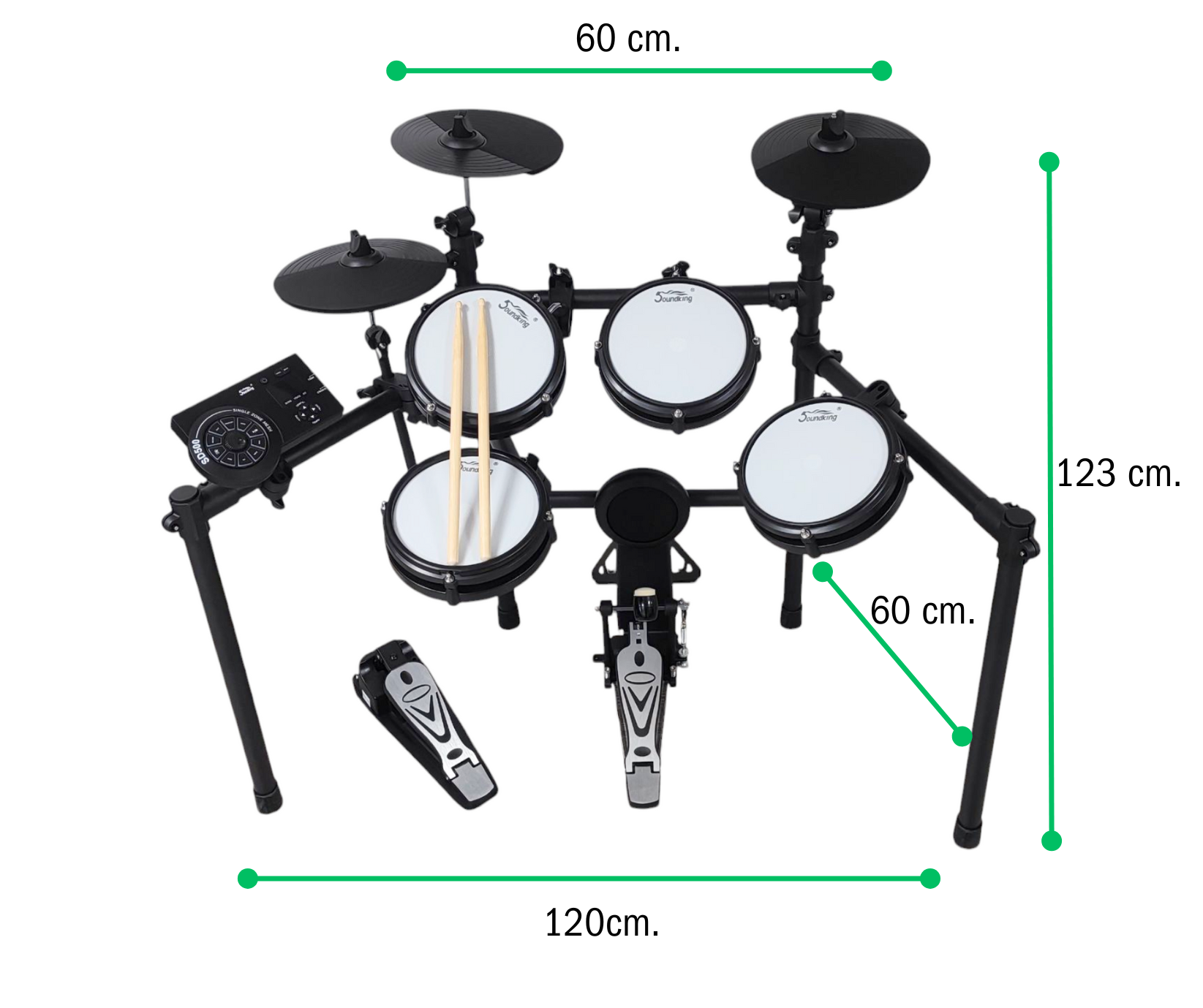 La Soundking SD500 es una batería electrónica diseñada para brindar una experiencia de ejecución realista, cómoda y versátil. Gracias a sus parches de malla en los tambores, ofrece una sensación natural al tocar, con un rebote muy similar al de una batería acústica. Es ideal tanto para practicar en casa con auriculares sin molestar a nadie, como para ensayar o grabar en estudio gracias a sus múltiples conexiones.