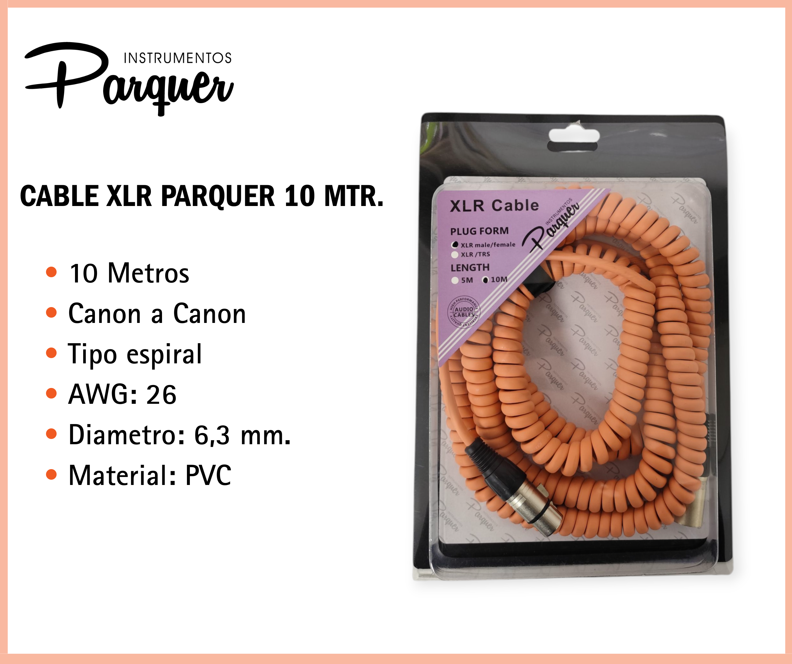 Tipo de cable: Cable balanceado para micrófono o audio profesional