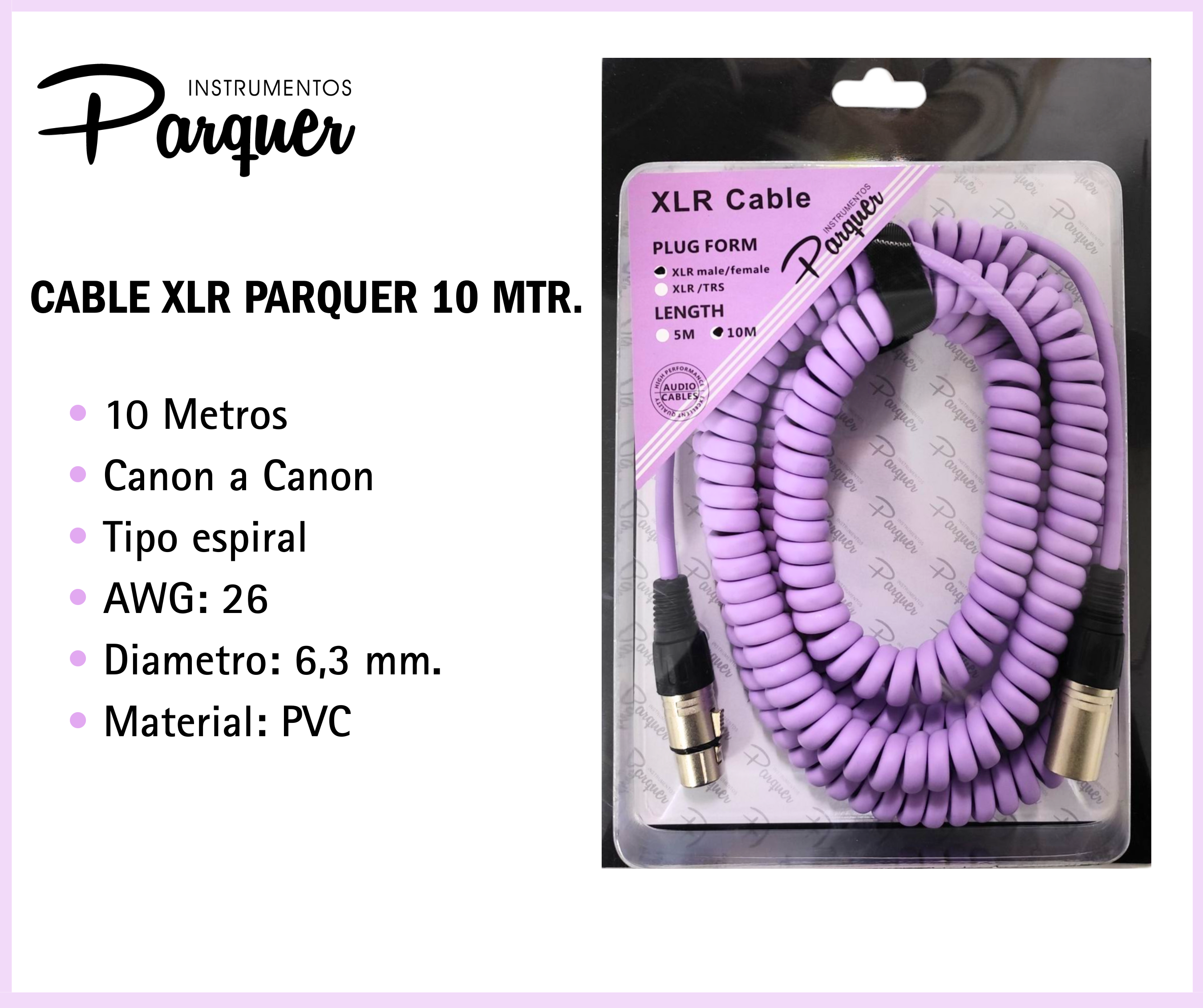 Tipo de cable: Cable balanceado para micrófono o audio profesional