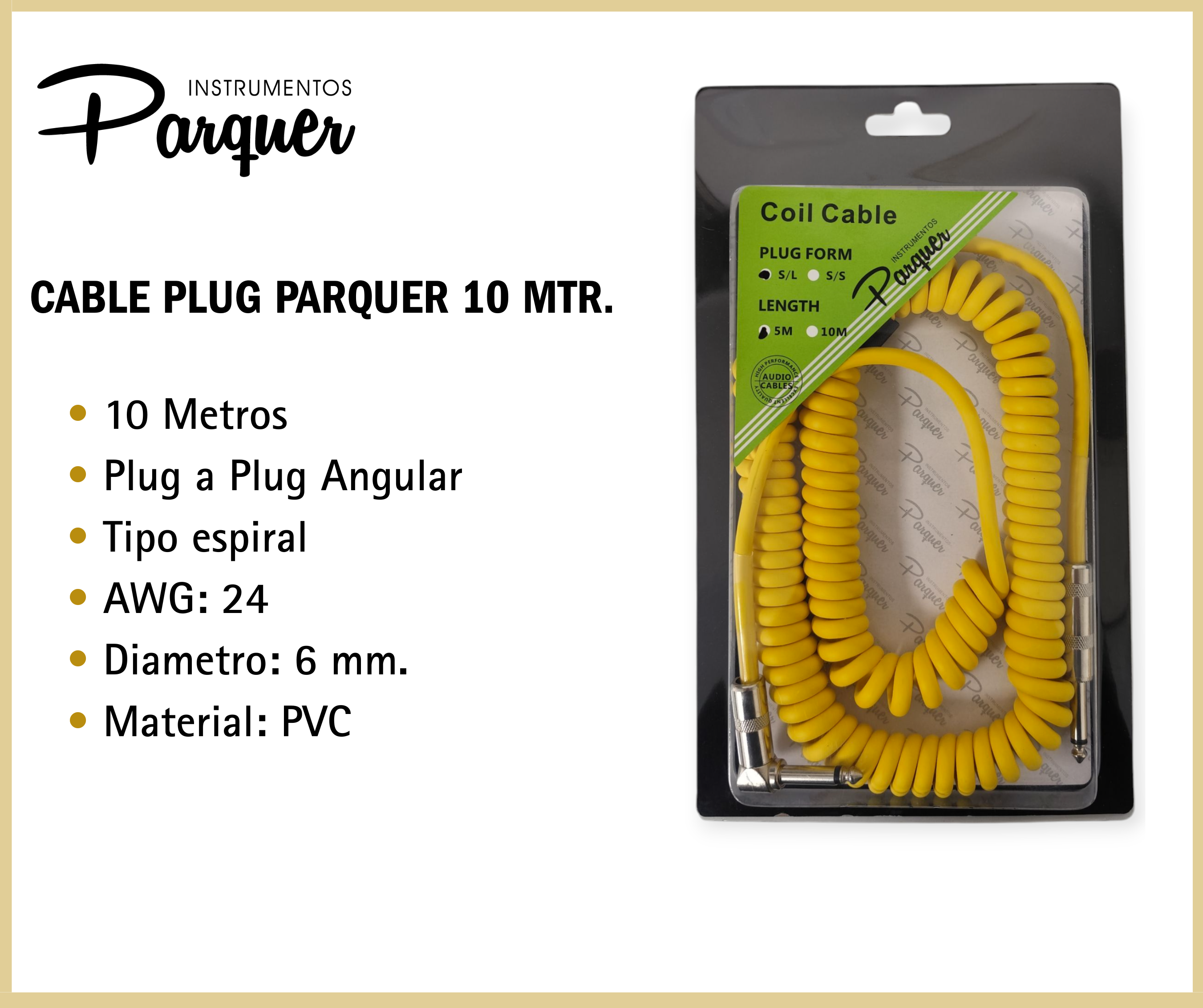 Cable profesional espiralado para guitarra, bajo, teclado u otros instrumentos con salida de 6.35 mm mono. Su diseño tipo coil permite extenderse con comodidad mientras se mantiene ordenado, evitando enredos y reduciendo la tracción sobre los conectores. Ideal para escenarios, estudios, salas de ensayo y uso cotidiano.