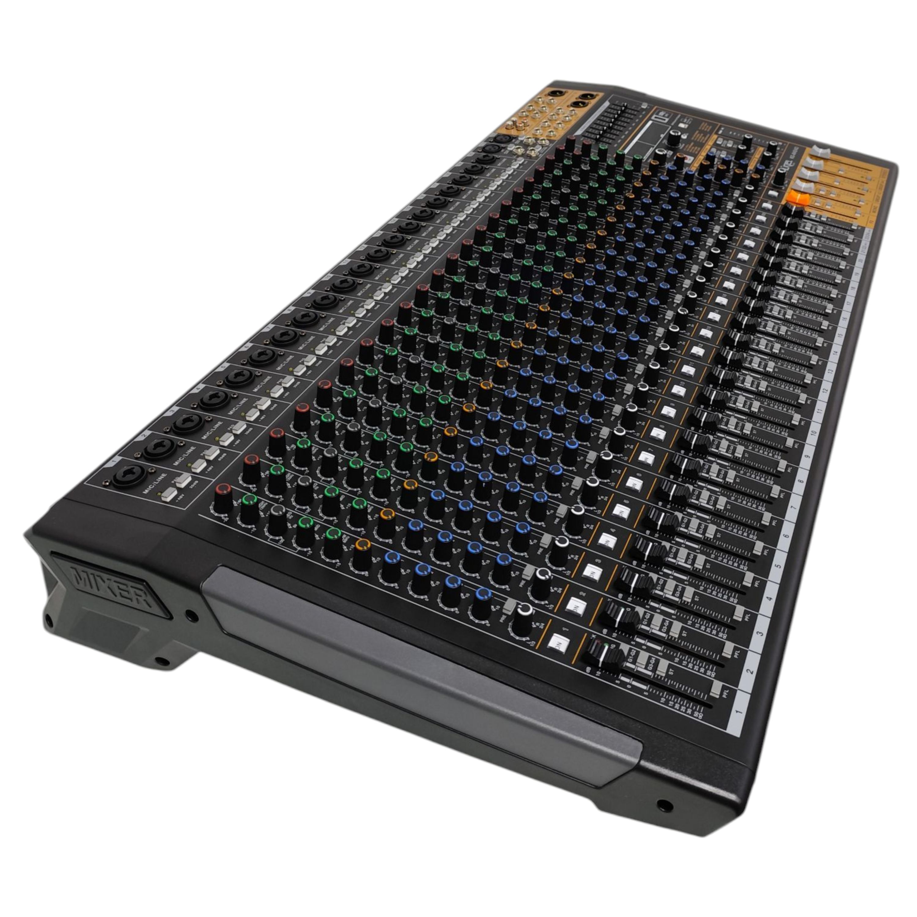 La Hügel KG-AH240 es una consola mezcladora profesional de 24 canales, diseñada para ofrecer el máximo rendimiento tanto en estudios como en escenarios en vivo. Su construcción robusta, amplia conectividad y funciones digitales avanzadas la convierten en una herramienta completa para músicos, técnicos de sonido y productores.