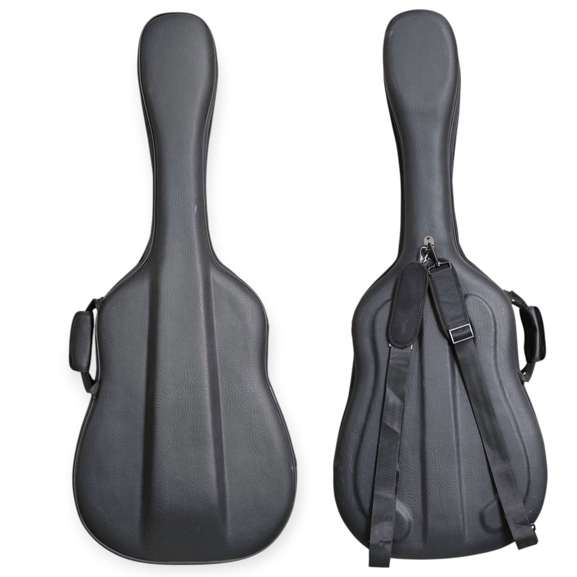Construido con una estructura sólida de madera liviana recubierta en vinilo texturado, ofrece excelente resistencia a golpes, humedad y cambios de temperatura. Su interior acolchado con felpa suave mantiene tu guitarra firme y libre de rayaduras.