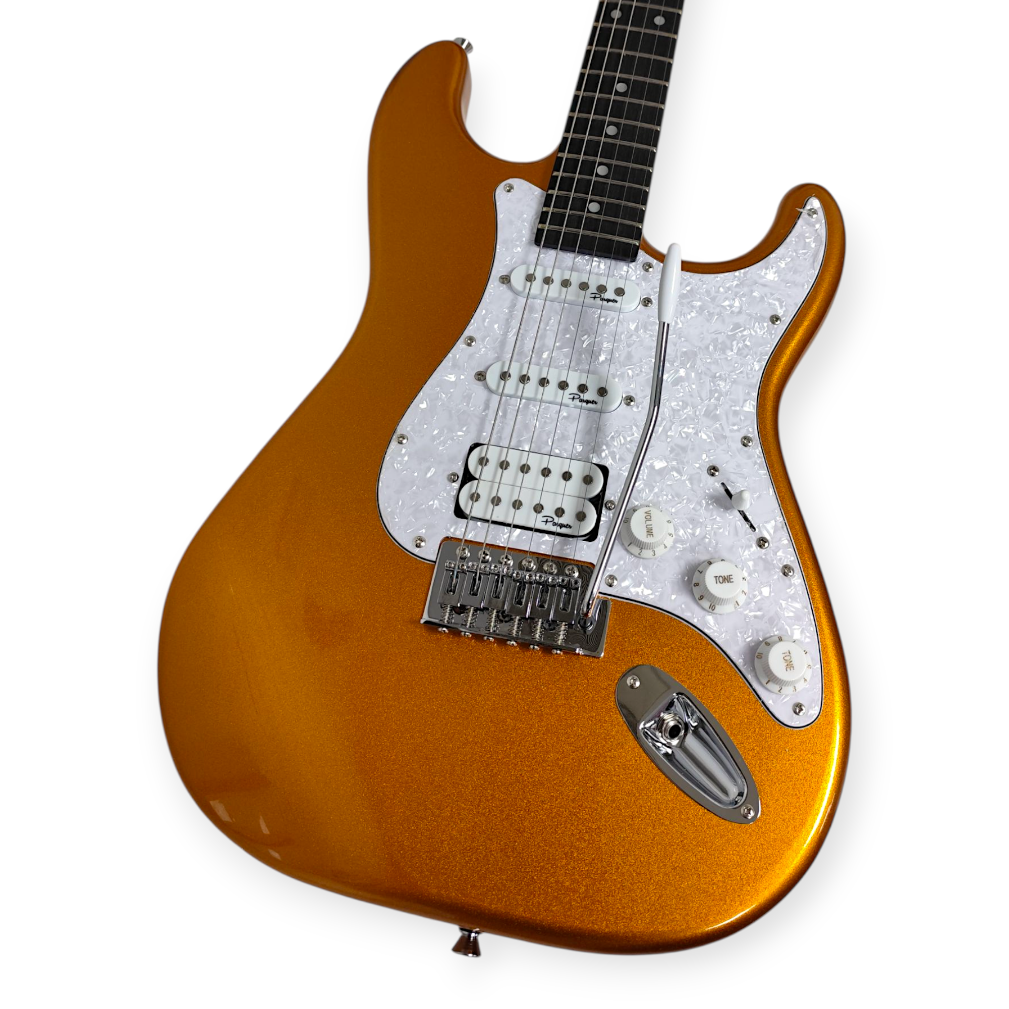 La guitarra Strato Parquer es ideal para quienes buscan un instrumento versátil, cómodo y con un look moderno. Su cuerpo de álamo con acabado laqueado ofrece un estilo llamativo y resistente, mientras que el mástil de arce con diapasón de madera técnica garantiza comodidad y estabilidad en la ejecución.