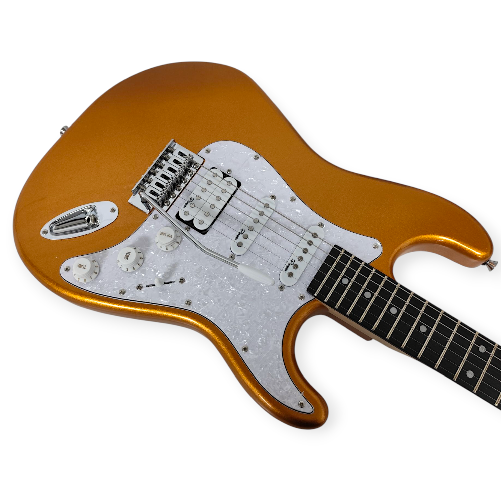 Equipada con configuración HSS (Humbucker en puente y dos single coil), brinda una amplia variedad de sonidos, desde tonos brillantes y definidos hasta una distorsión más potente y con cuerpo. El sistema de 2 volúmenes, 2 tonos y selector de 3 posiciones permite ajustar fácilmente el carácter de la guitarra a distintos estilos musicales.