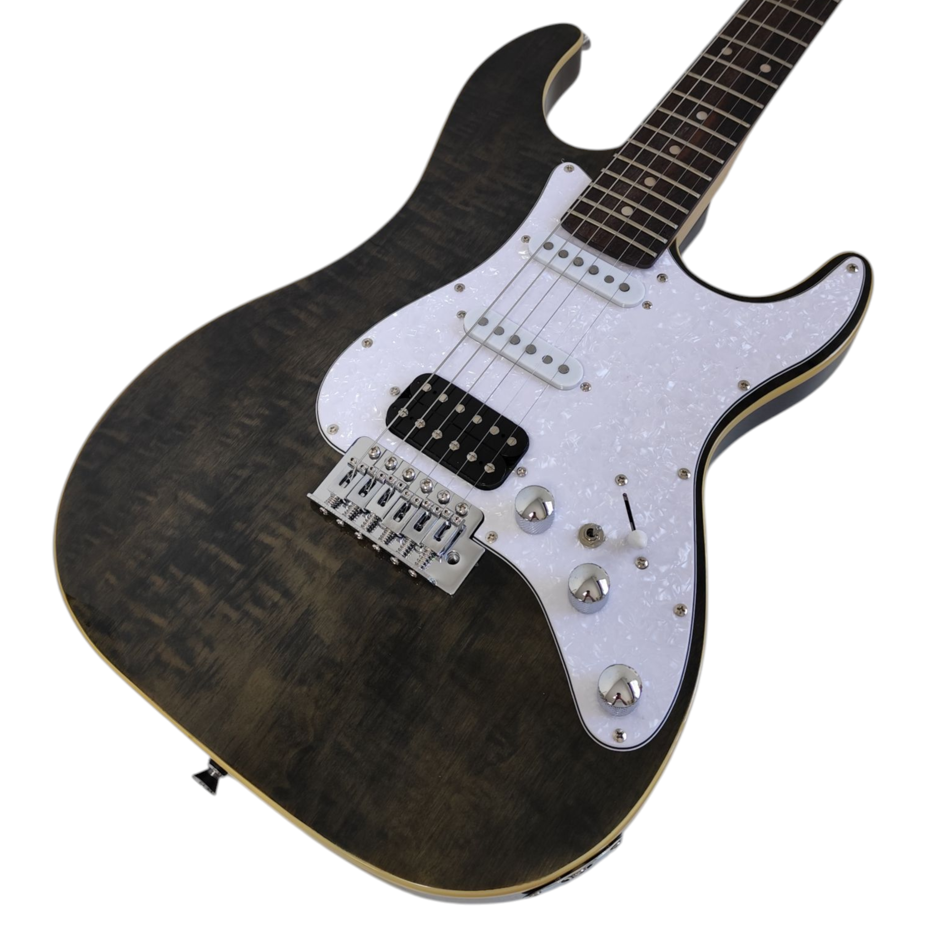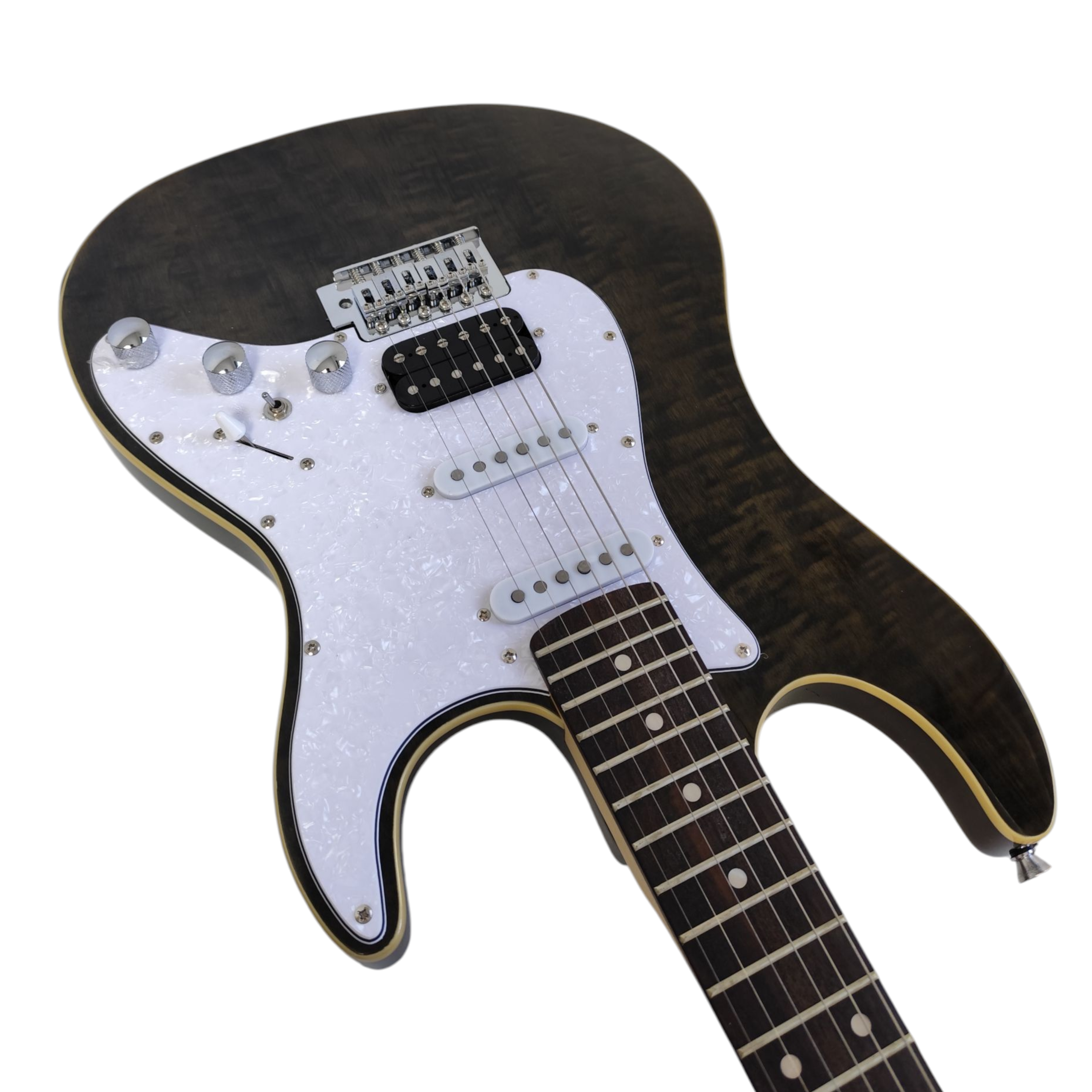 Cuerpo de madera de álamo con chapa Blistering grain, diapasón de laurel. Pastillas Alnico.