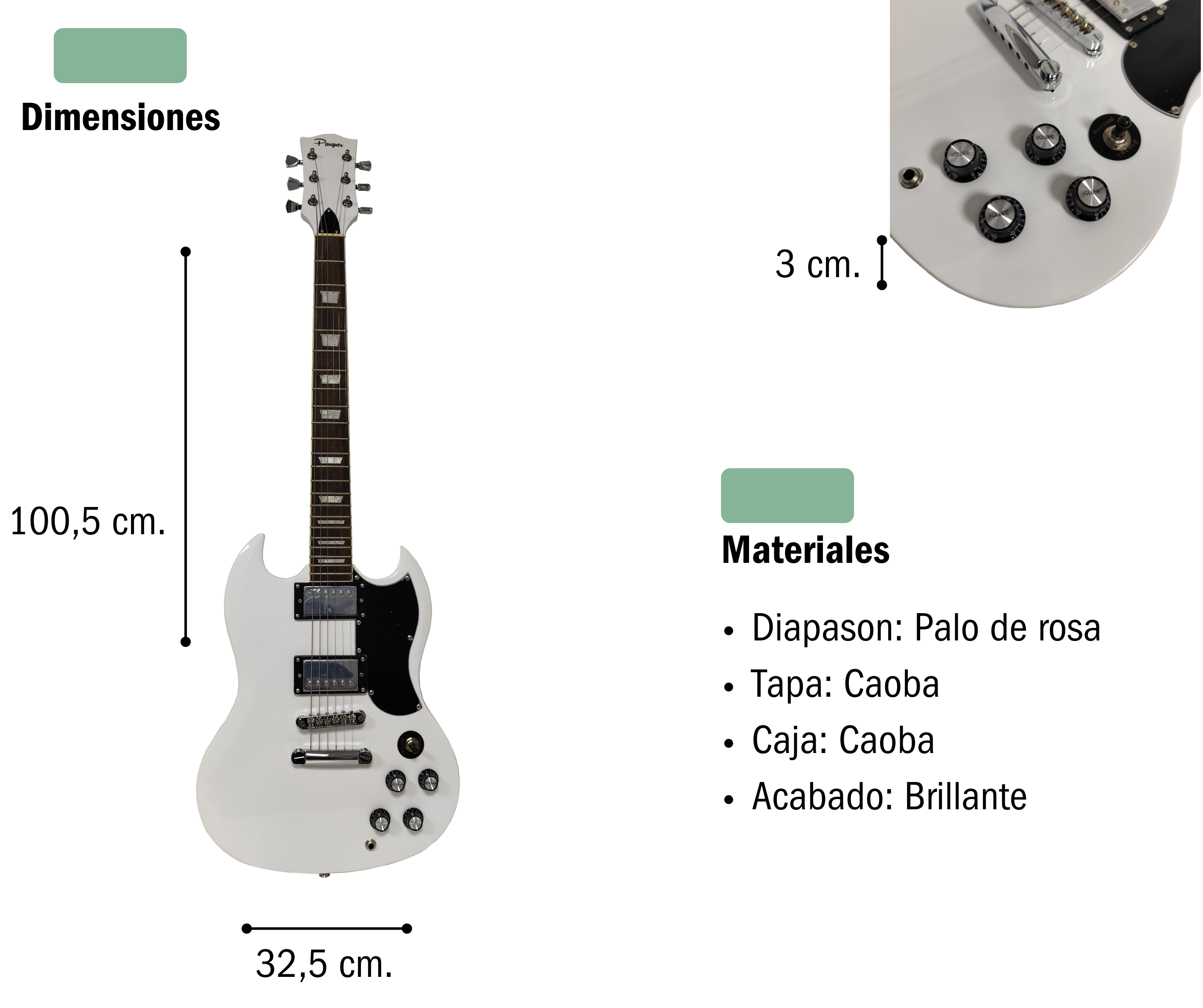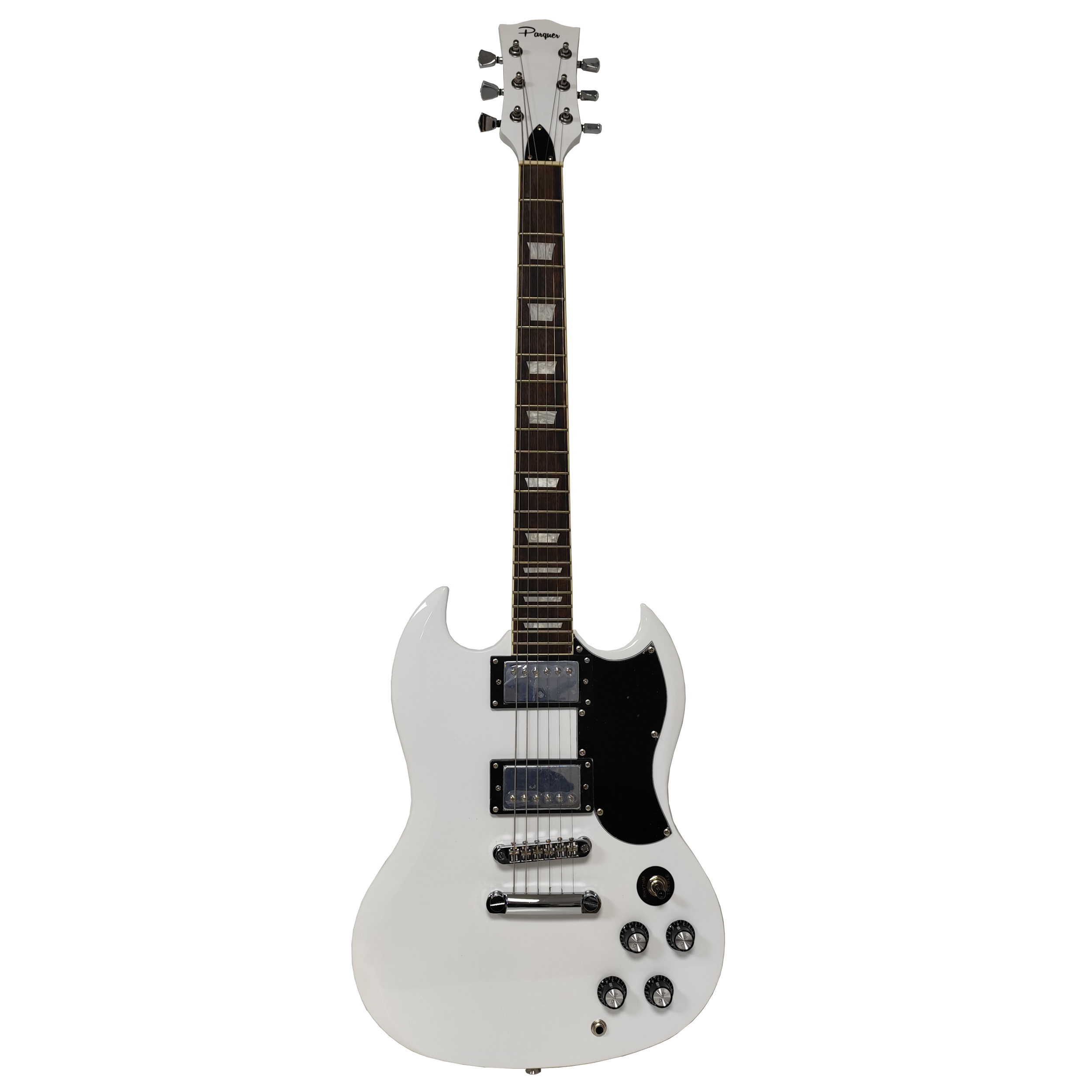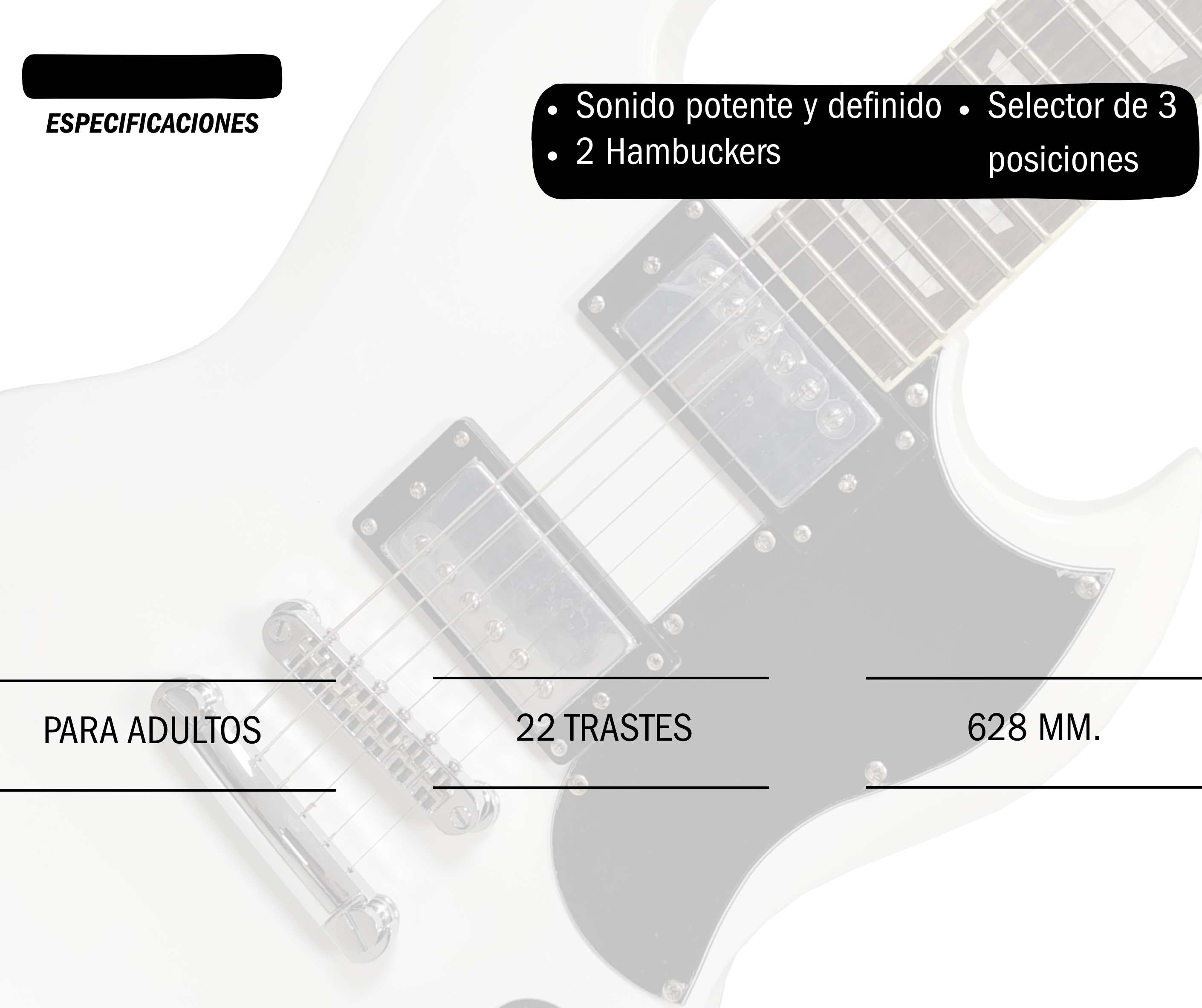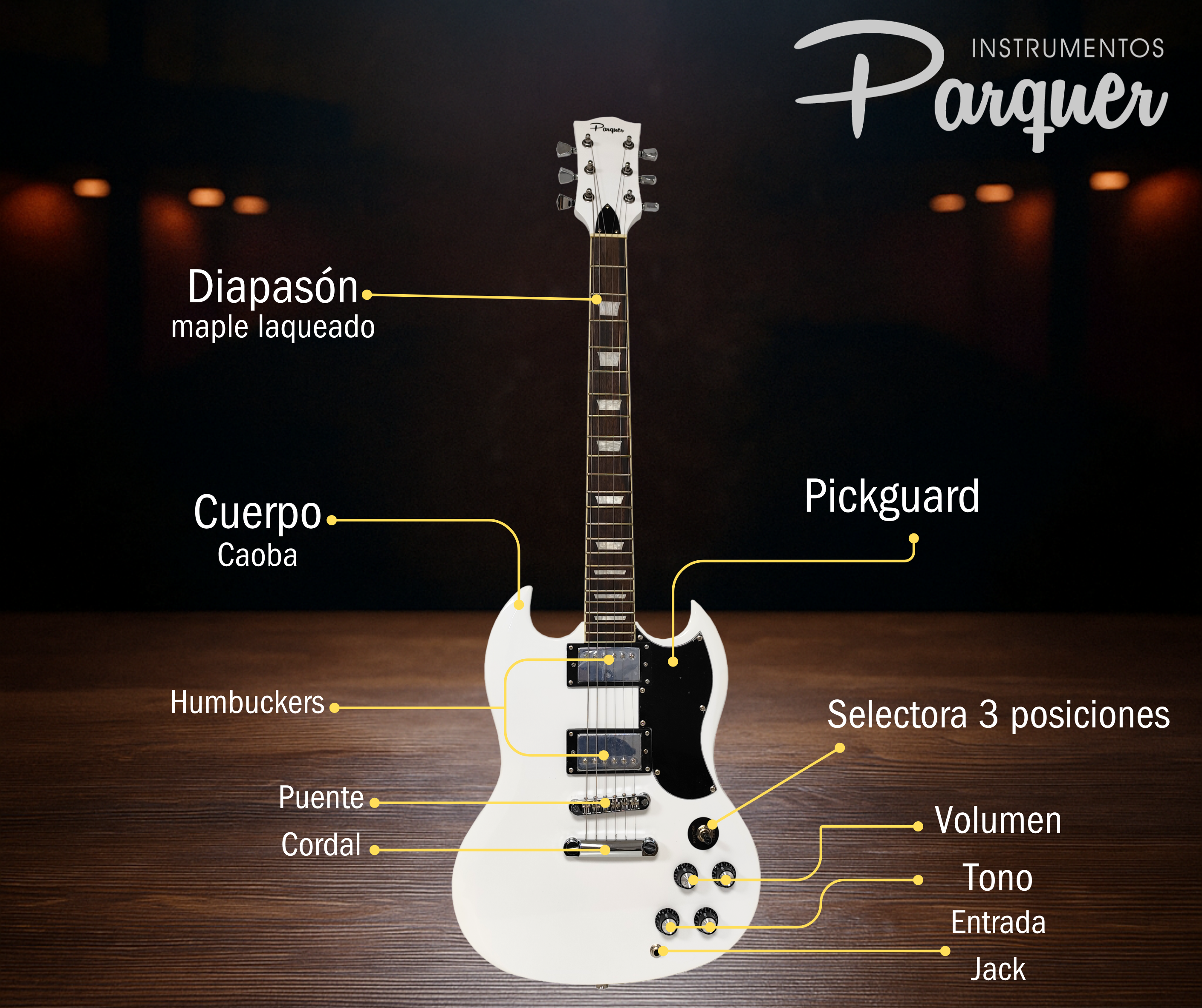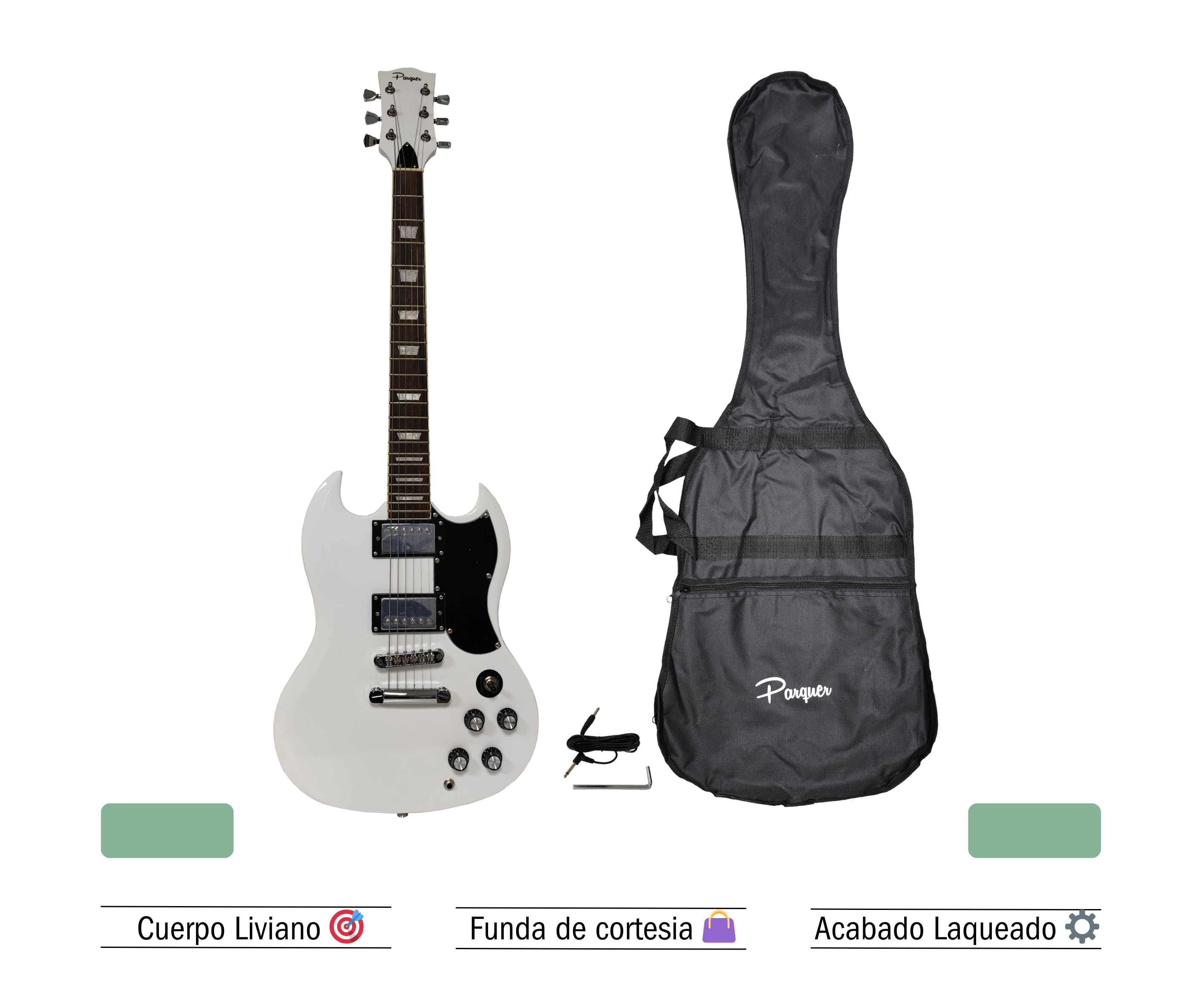 La Parquer SG100 White es una guitarra eléctrica diseñada para quienes buscan un instrumento confiable, cómodo y con un sonido potente. Su construcción en caoba y sus micrófonos humbucker dobles le otorgan un tono cálido, con cuerpo y la ganancia justa para estilos como rock, blues y hard rock. Es una excelente opción tanto para estudiantes avanzados como para músicos que necesitan una guitarra sólida para ensayo o escenario.