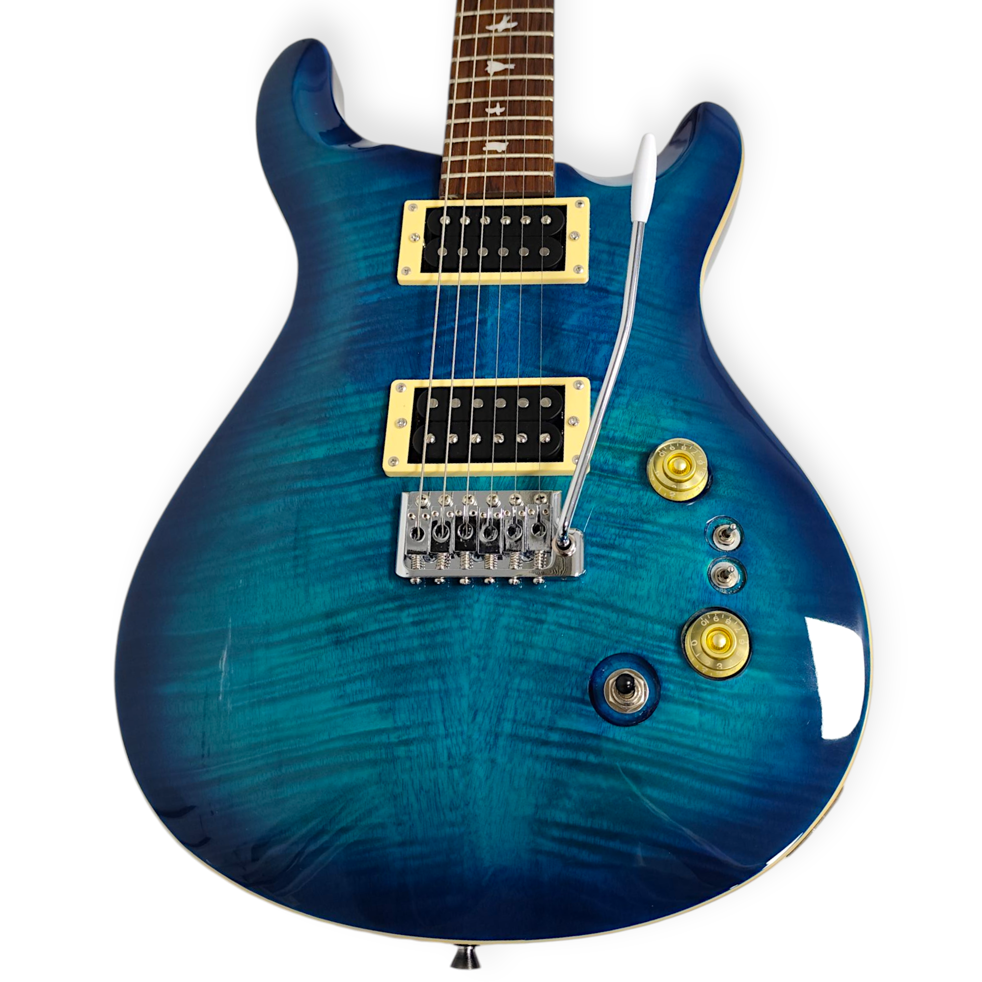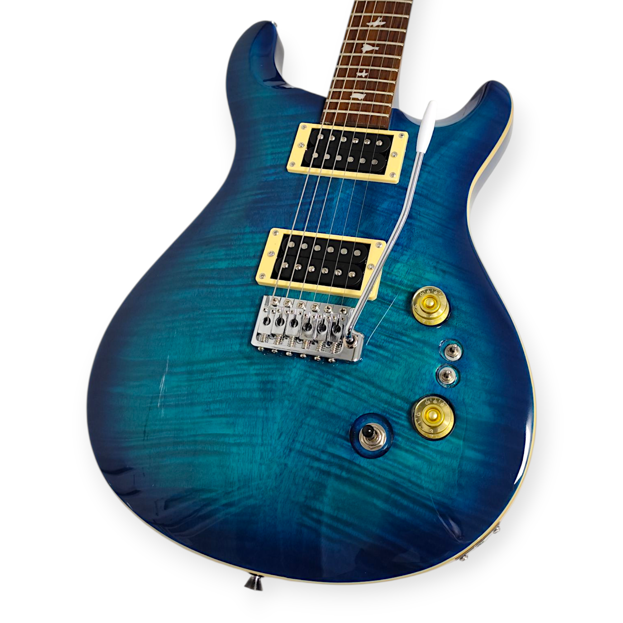 Su cuerpo liviano y resonante, combinado con una tapa flameada que realza el acabado azul brillante, le otorgan un aspecto premium. Los micrófonos humbucker brindan un sonido potente y versátil, ideal para rock, blues o pop.