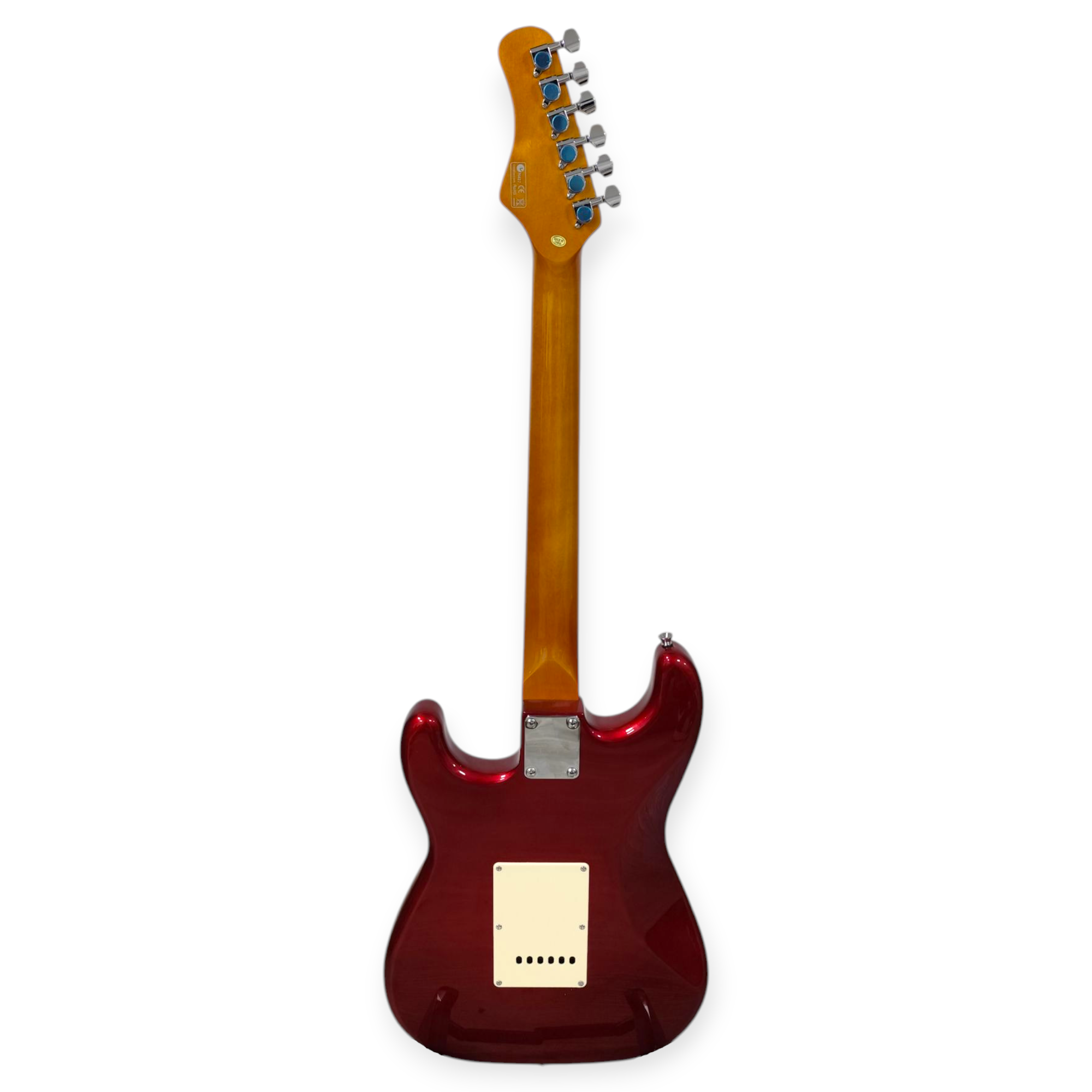 La Parquer ST-310 es una guitarra eléctrica de diseño clásico tipo Stratocaster, ideal para quienes buscan un instrumento versátil y con estética vintage. Inspirada en los modelos más icónicos de la historia del rock, ofrece un look retro con colores llamativos y un sonido equilibrado que se adapta a múltiples estilos musicales.