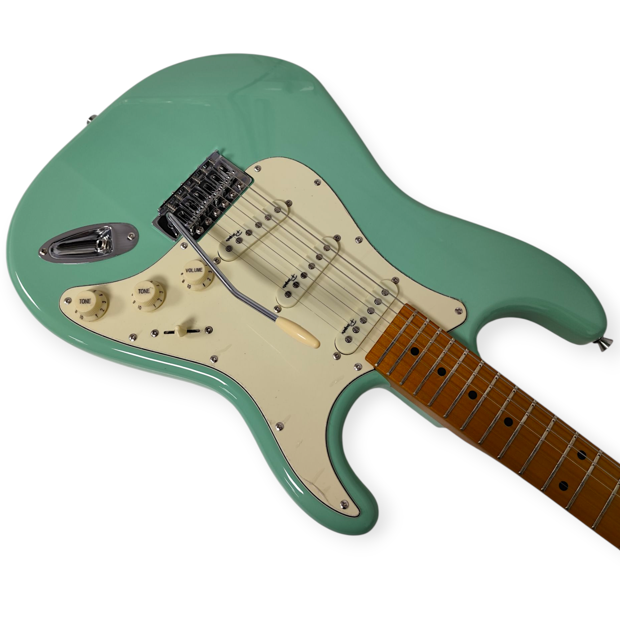La Parquer ST-310 es una guitarra eléctrica de diseño clásico tipo Stratocaster, ideal para quienes buscan un instrumento versátil y con estética vintage. Inspirada en los modelos más icónicos de la historia del rock, ofrece un look retro con colores llamativos y un sonido equilibrado que se adapta a múltiples estilos musicales.