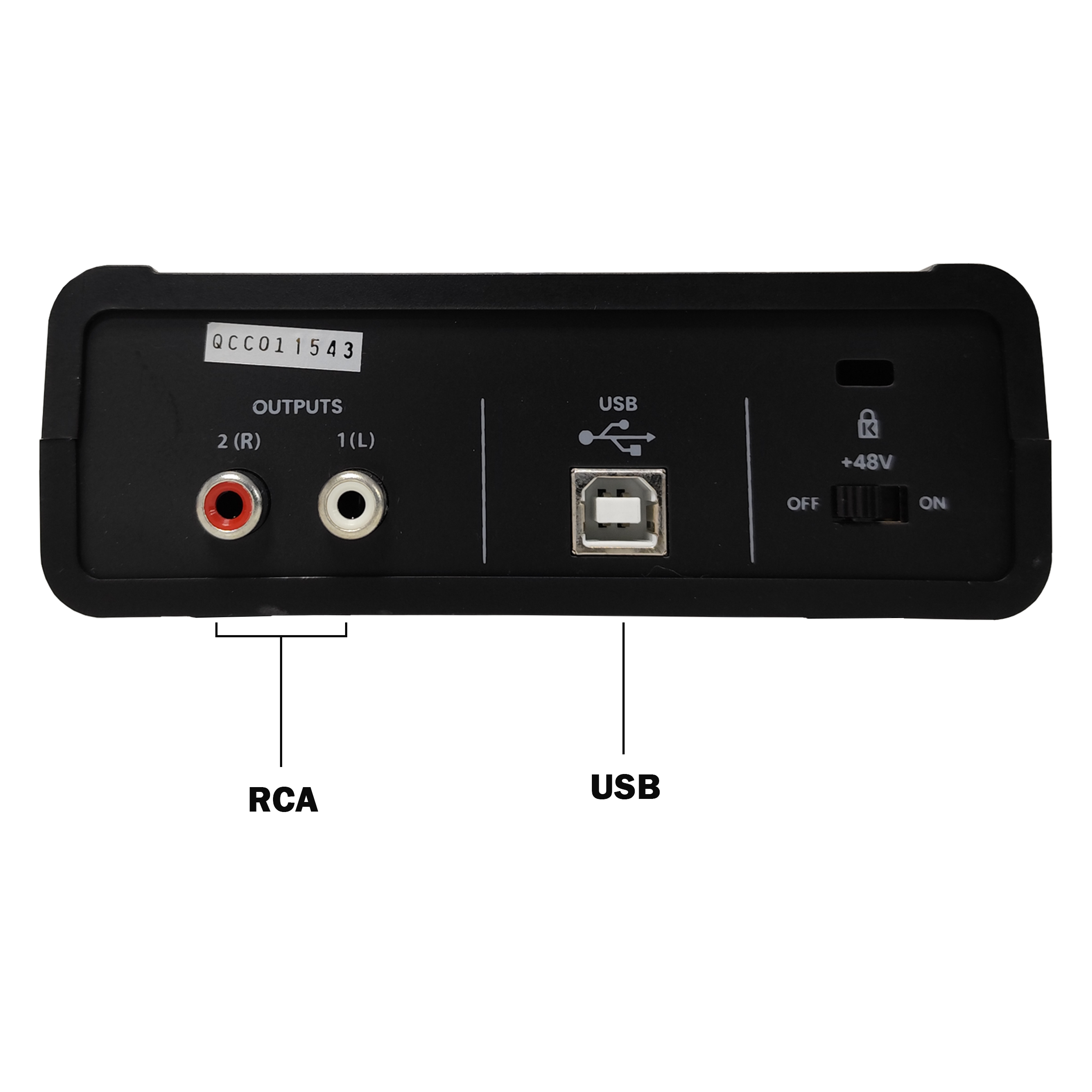 TIPO DE INTERFAZ DE AUDIO FAST TRACK 2X2 Calidad 24 BIT / 48 kHz (más que un CD) 1 entrada combo XLR / Jack MIC/LINE (entrada 1) Alimentación Phantom 48V Entrada de instrumento Jack 6.3mm (entrada 2) Salidas: Jack balanceado 6.3mm – Control de volumen para salida 1 + 2 Entrada de instrumento de 1/4″ con control de ganancia. Salida de auriculares estéreo de 1/4″ Alimentado por USB Requisitos del sistema: USB 2.0 o USB C, WIN 7 (32 o 64 o Mac OS X 10.8 o posterior) Peso 0,90 kg.