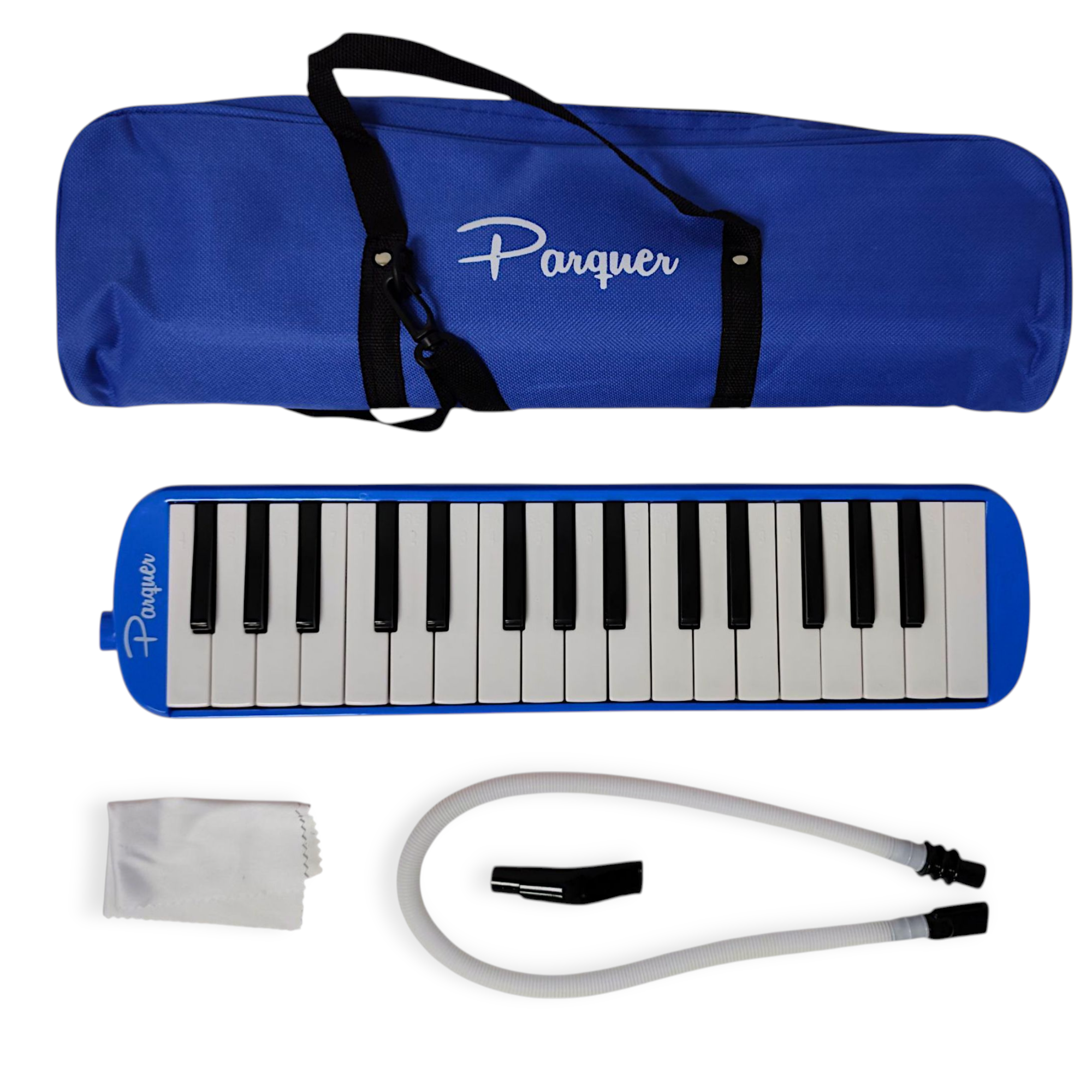 Melódica a Piano Parquer 32 Notas Azul con Funda Manguera