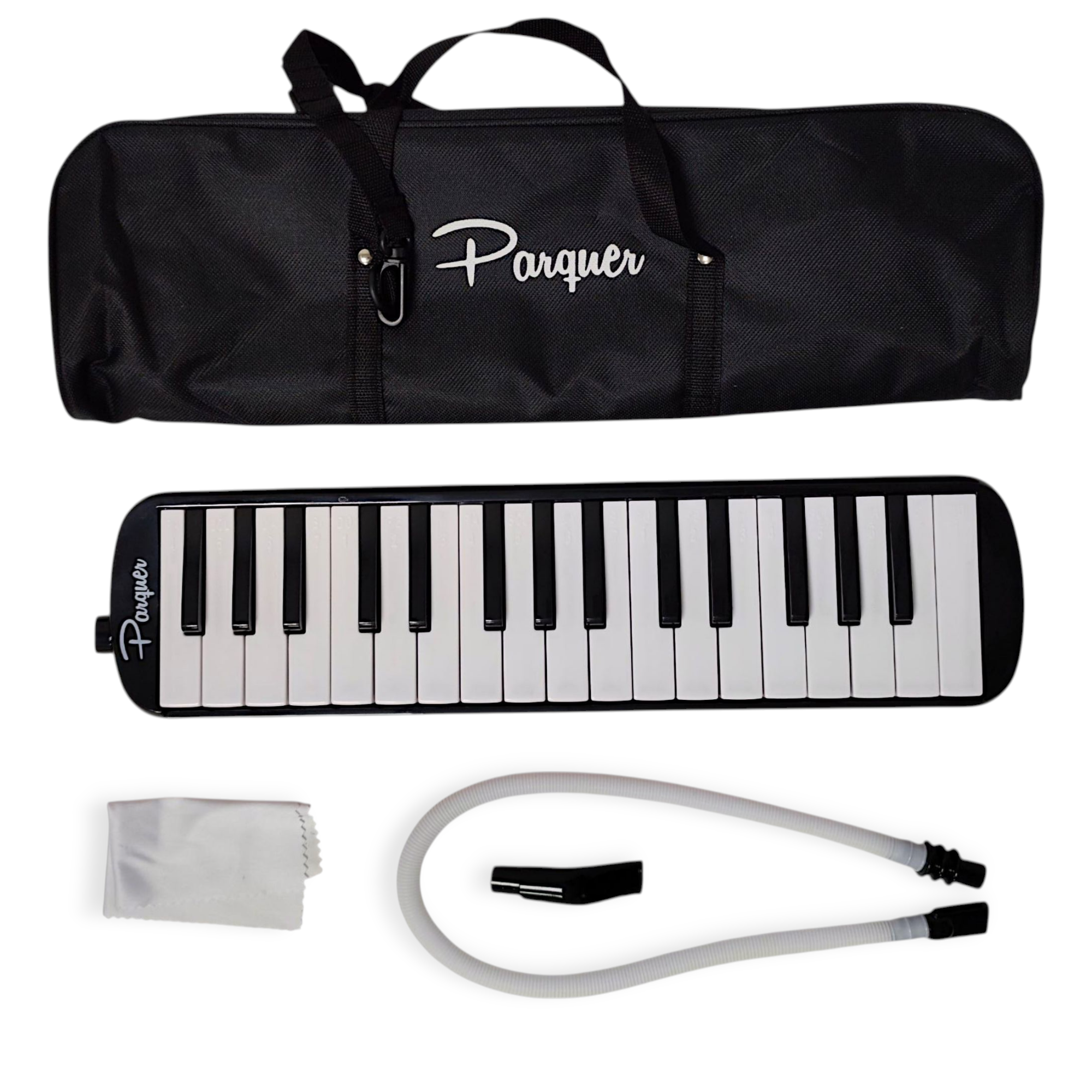 Descubre la Melódica Parquer de 32 notas en elegante negro. Su diseño incluye manguera y boquilla desmontables para mayor comodidad. Experimenta una gran calidad sonora en cada nota. ¡Listo para llevar con su funda incluida! Eleva tu expresión musical con esta melódica versátil y compacta.