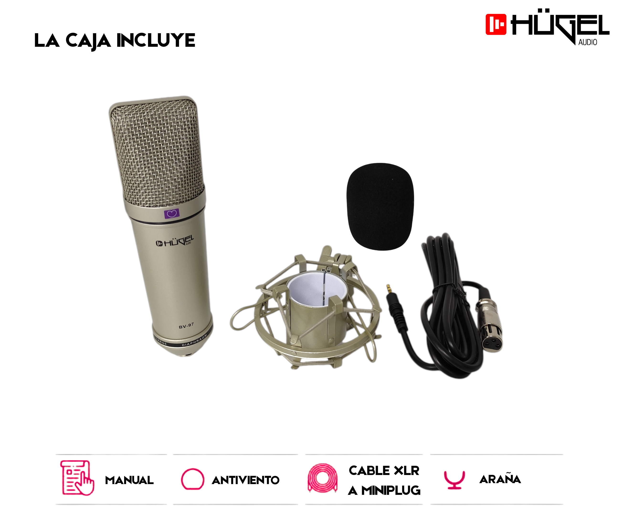 Incluye soporte tipo araña para minimizar vibraciones, cable de conexión y paravientos para grabaciones limpias y sin interferencias.