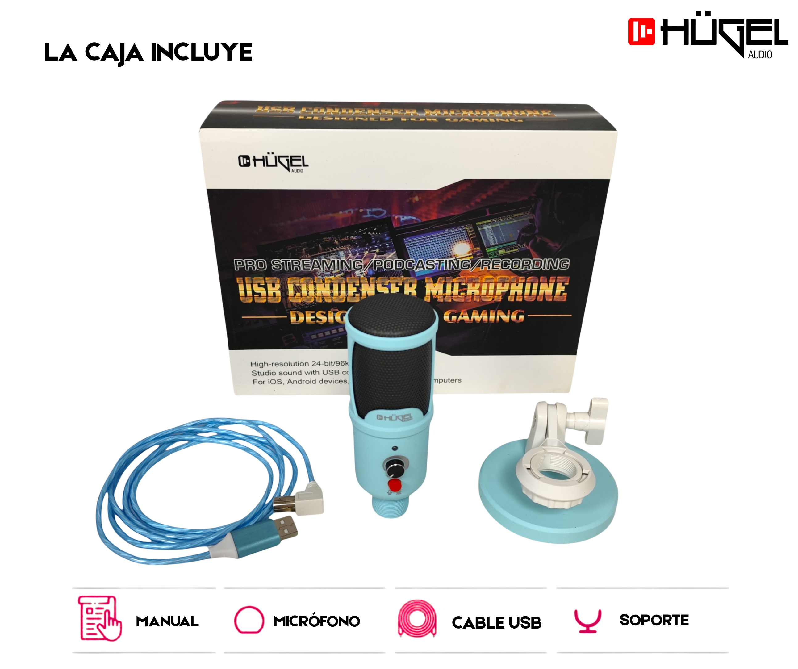 Micrófono Condenser Hügel Streaming Gaming con soporte y cable incluido