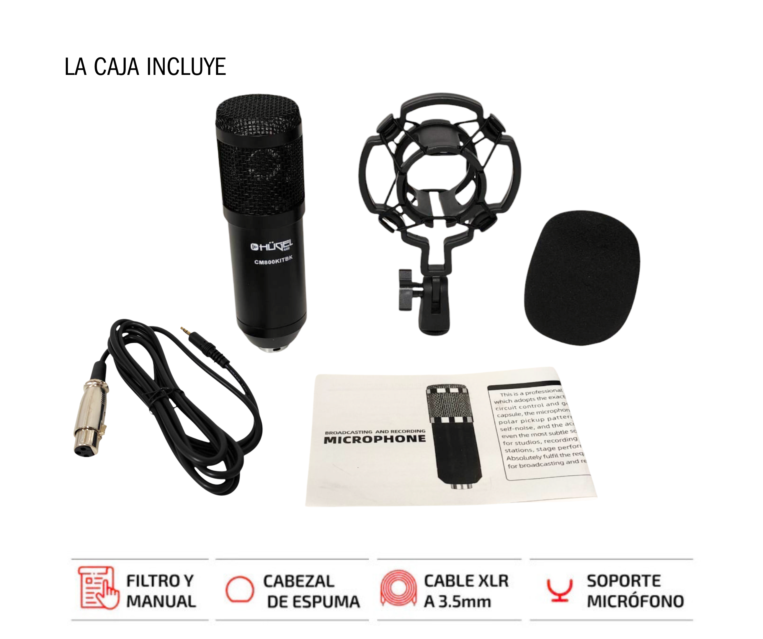 Kit Micrófono Condenser Hügel Negro con Soporte y Pop Filter