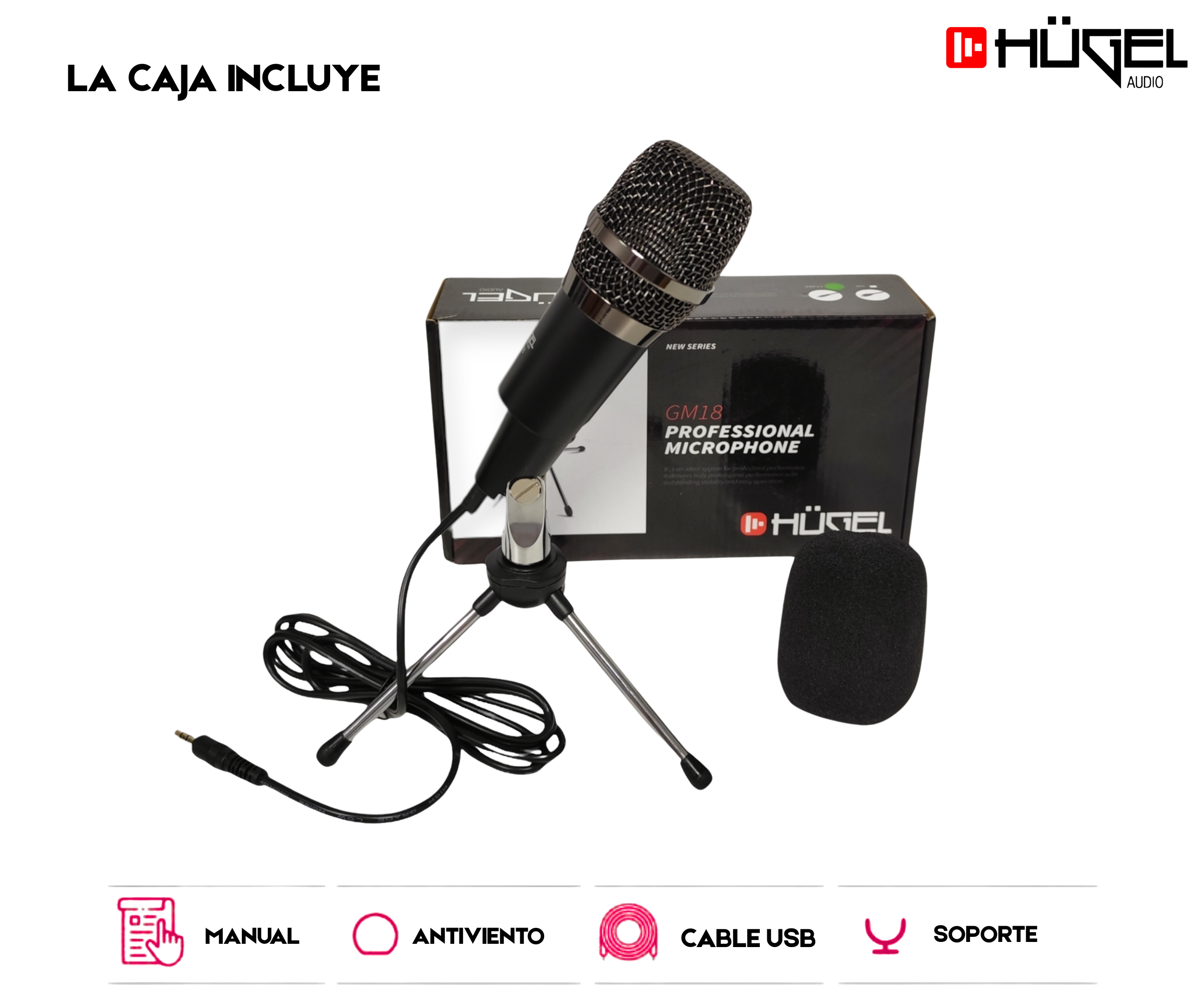 Micrófono Condenser Hügel P/ Pc Streaming Mini Plug Soporte