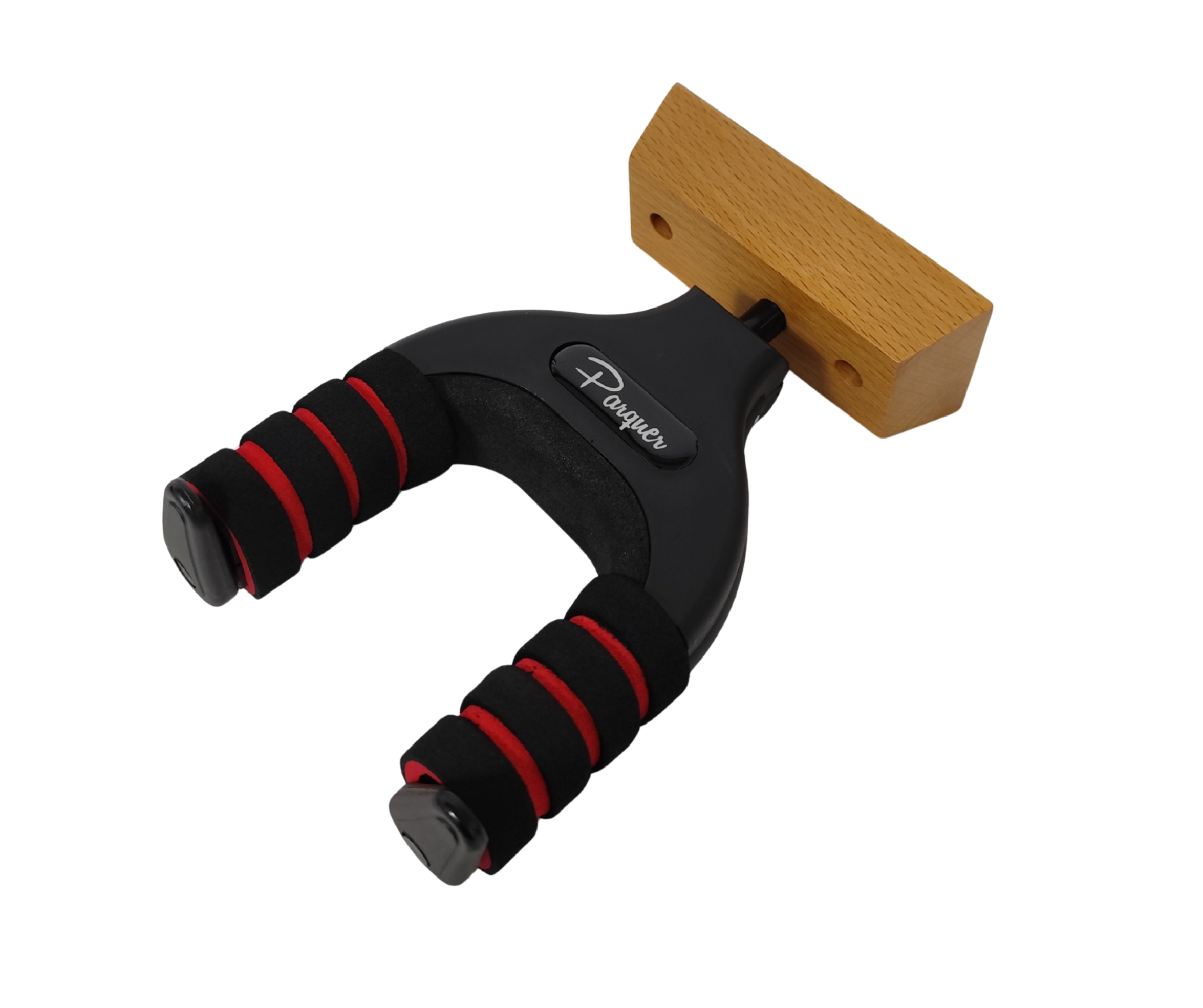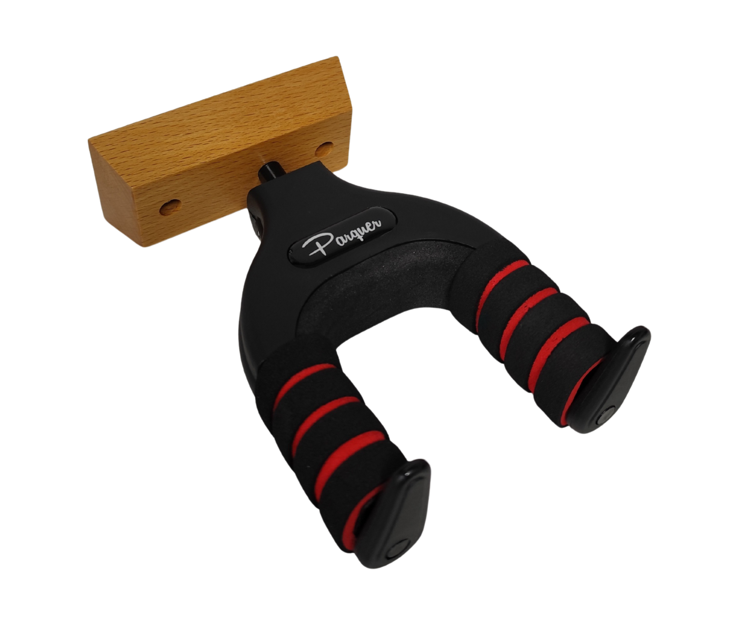 Cuenta con una base de madera que le permite una fácil instalación y una forma optima de guardar sus instrumentos ahorrando espacio y exhibiéndolos al mismo tiempo. Tiene brazos cubiertos con espuma para evitar marcas que con el peso del instrumento