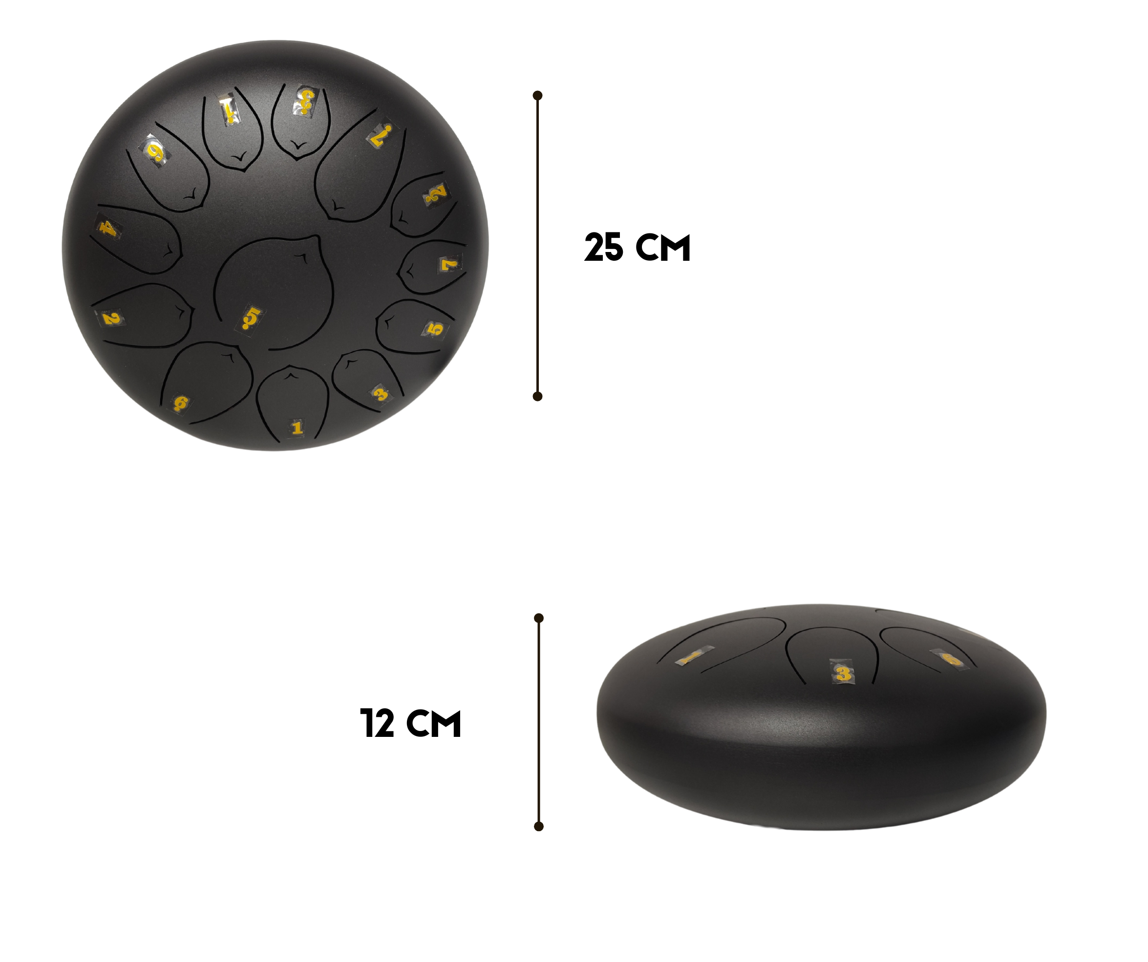 Steel Tongue Drum 10″ – 13 Tonos – Color Negro