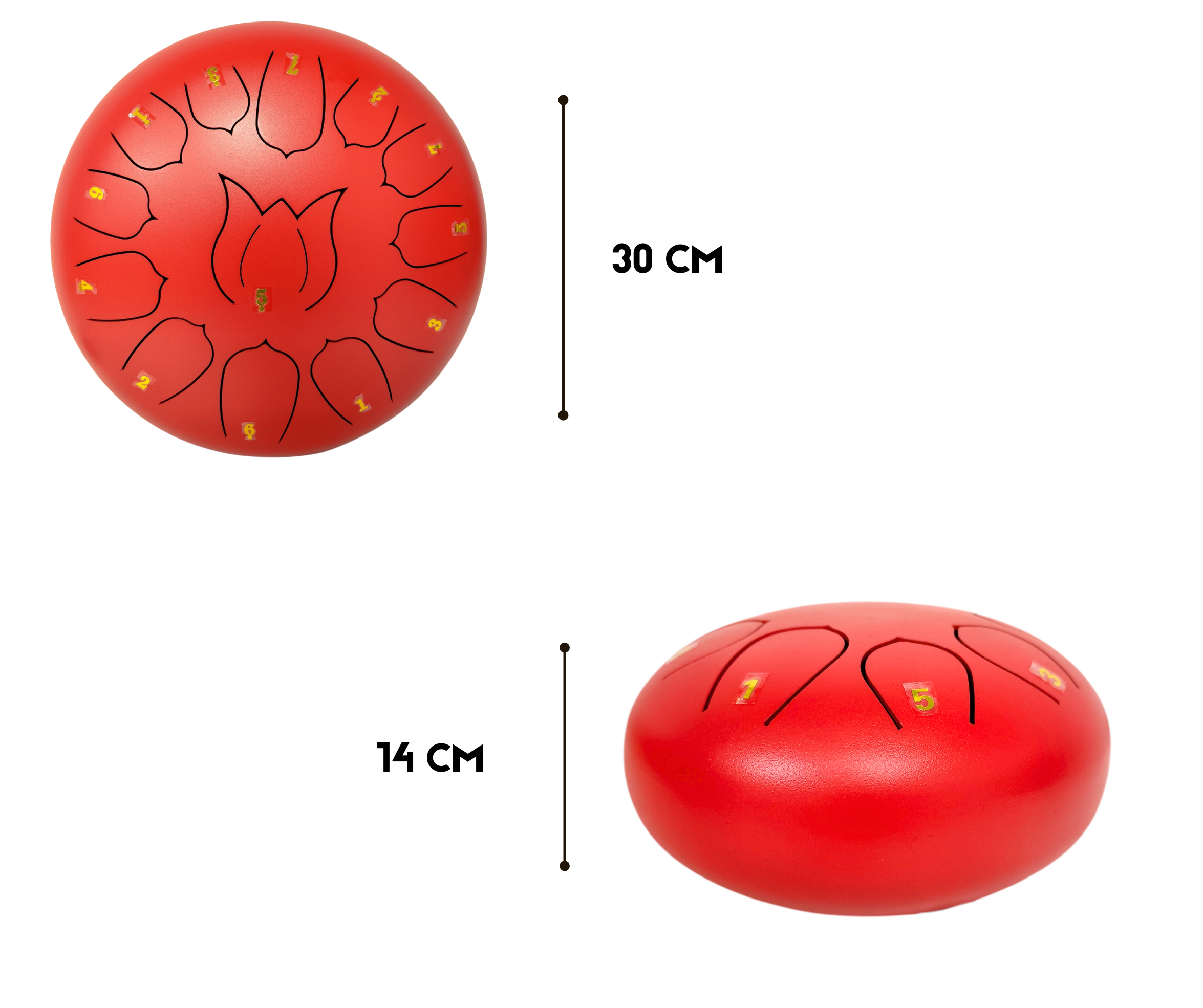 Steel Tongue Drum 12 Pulgadas 13 Tonos Parquer Rojo