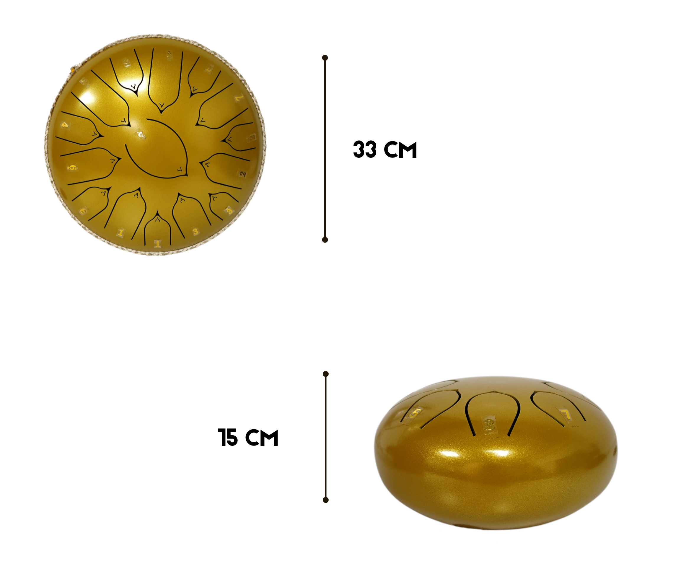 Steel Tongue Drum 13″ – 15 Tonos – Color Dorado