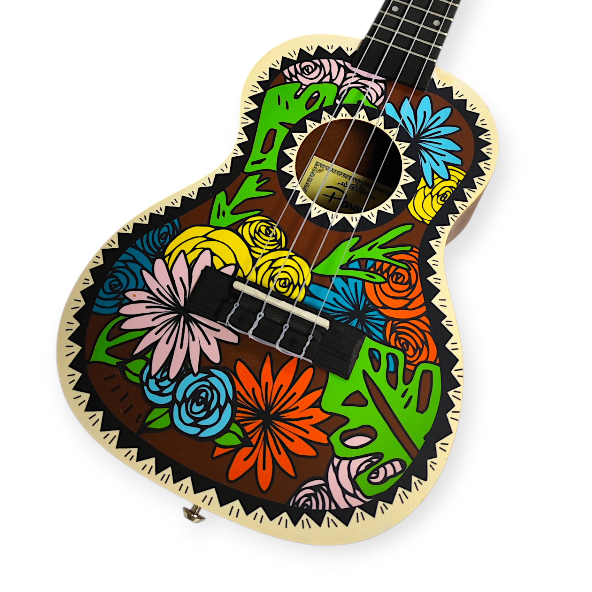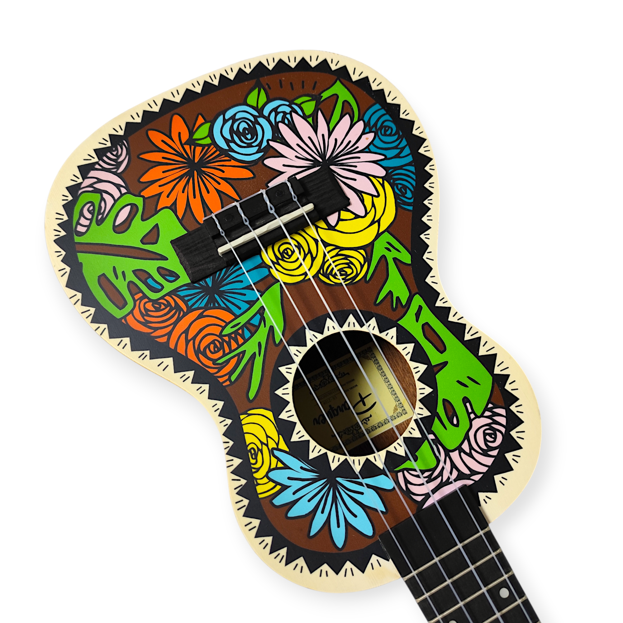 Ukelele 23″ Sublimado Rio. Tapa de Abeto. Cuerpo y Bordes de Caoba. Incluye Funda